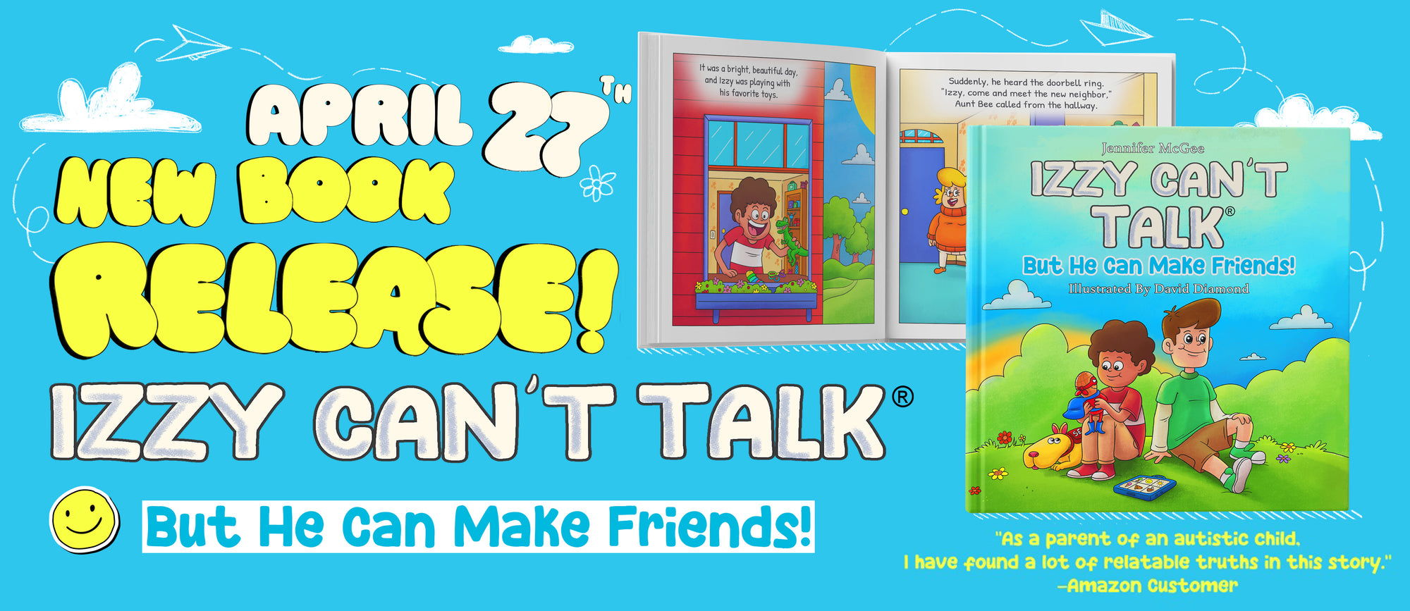 Izzy Can’t Talk But He Can Make Friends—A story about the challenges of social and human connections that sometimes autistic persons can face. Join Izzy as he overcomes those challenges and learns the value of making a new friend!