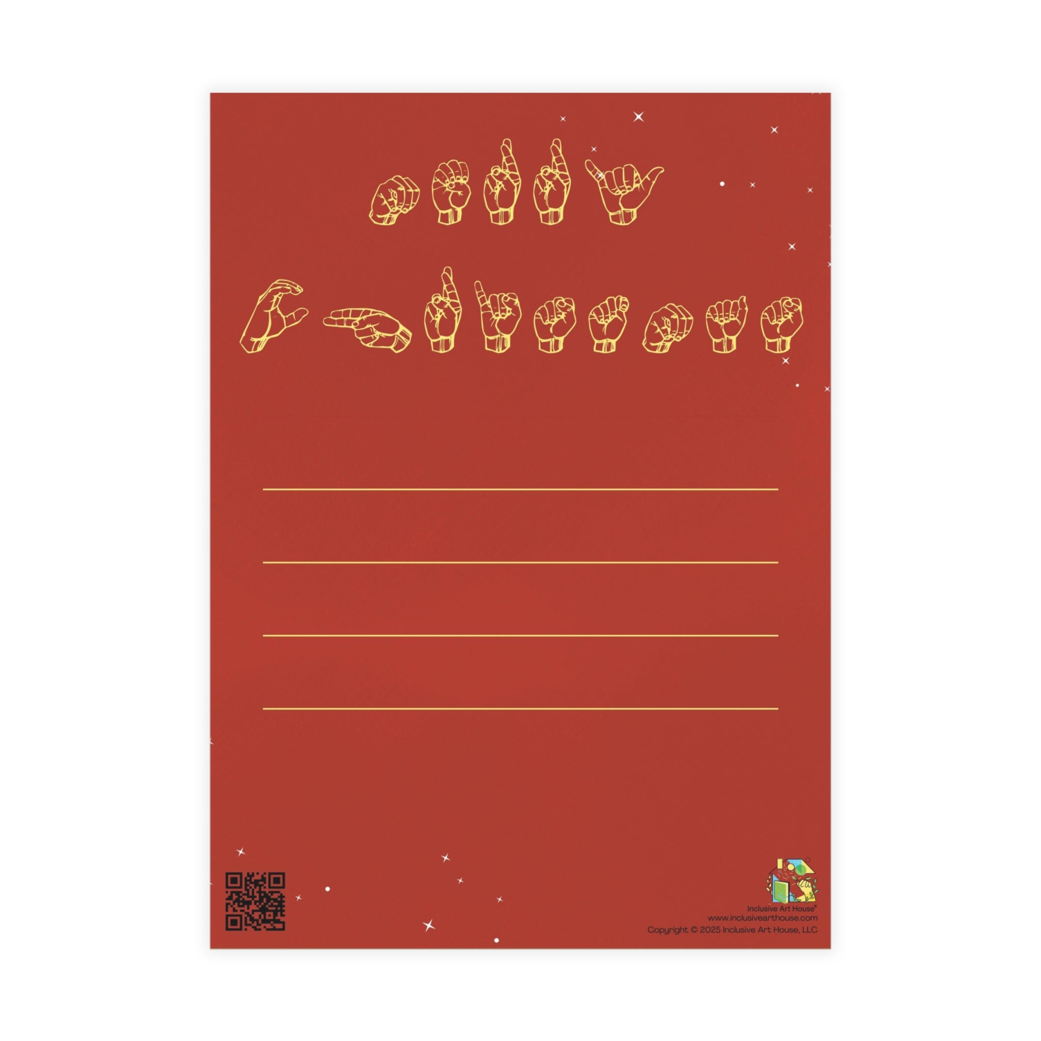 But the magic doesn't stop there. Flip the card, and the back reveals a spellbinding display of "Merry Christmas" spelled out in sign language. It's a thoughtful touch that adds depth and meaning to every card, making them not just pieces of art but tangible expressions of inclusivity.